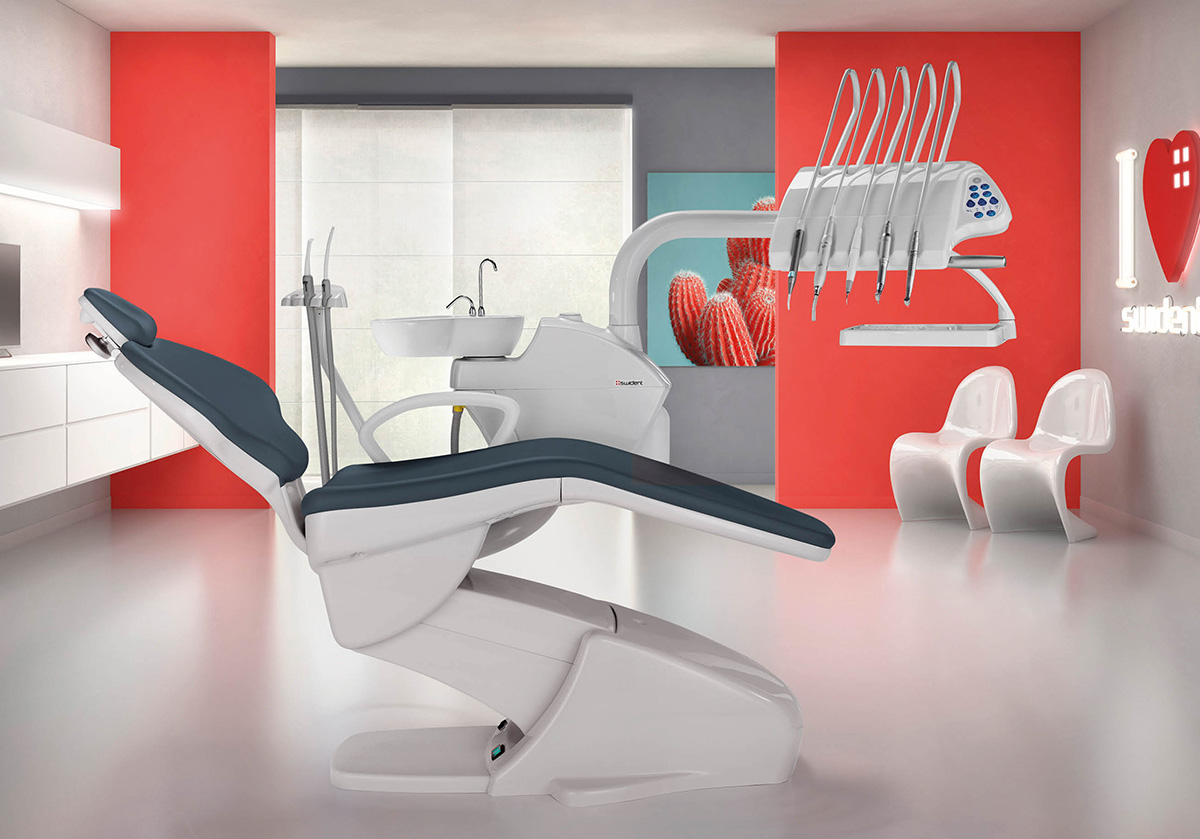 Boasting  Swiss  precision  with an Italian flair, the Swident Friend Up is designed with an emphasis on ergonomics, aesthetics and simplicity to provide a comfortable and pleasant operating experience for the entire dental team. The patient chair features a double articulated headrest as well as soft seamless ergonomic upholstery available in 23 contemporary colours. For the doctor, the instrument table – available in either swing arm or hanging tubes comes equipped with: Luzzani triplex syringe; fibre optic high speed line; low speed line (including one Bien Air micromotor fibre optic MC3LK); as well as a touch panel for the operation of cup fill, bowl flush, patient chair, instrument functions and 4 separate chair positions. An ergonomically designed doctor stool, the Syncro T5 allows effortless seat height and backrest adjustments for optimum comfort and support. Among other unique features, the unit also includes a 180-degree rotatable ceramic spittoon that is easy removable and autoclavable for easy cleaning.